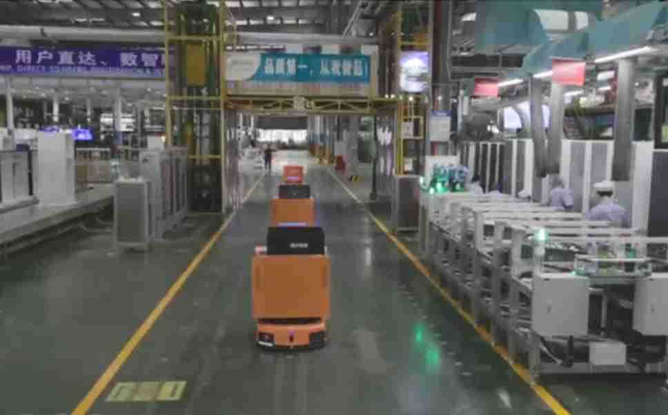 为车载冰箱物流配送打造的智能解决方案,,包含产中物流通过潜伏举升AMR搬运至线边,,,,产后成品物流智能仓储,,,流程包含产中物流智能齐套入库,,线边安灯叫料AMR智能配送至线边,,成品入库、、、、出库,,,通过无人堆高车机器人,,,智能仓储管理替代人工作业管理,,,实现更高存储、、更高效率、、、更具柔性化的解决方案。。